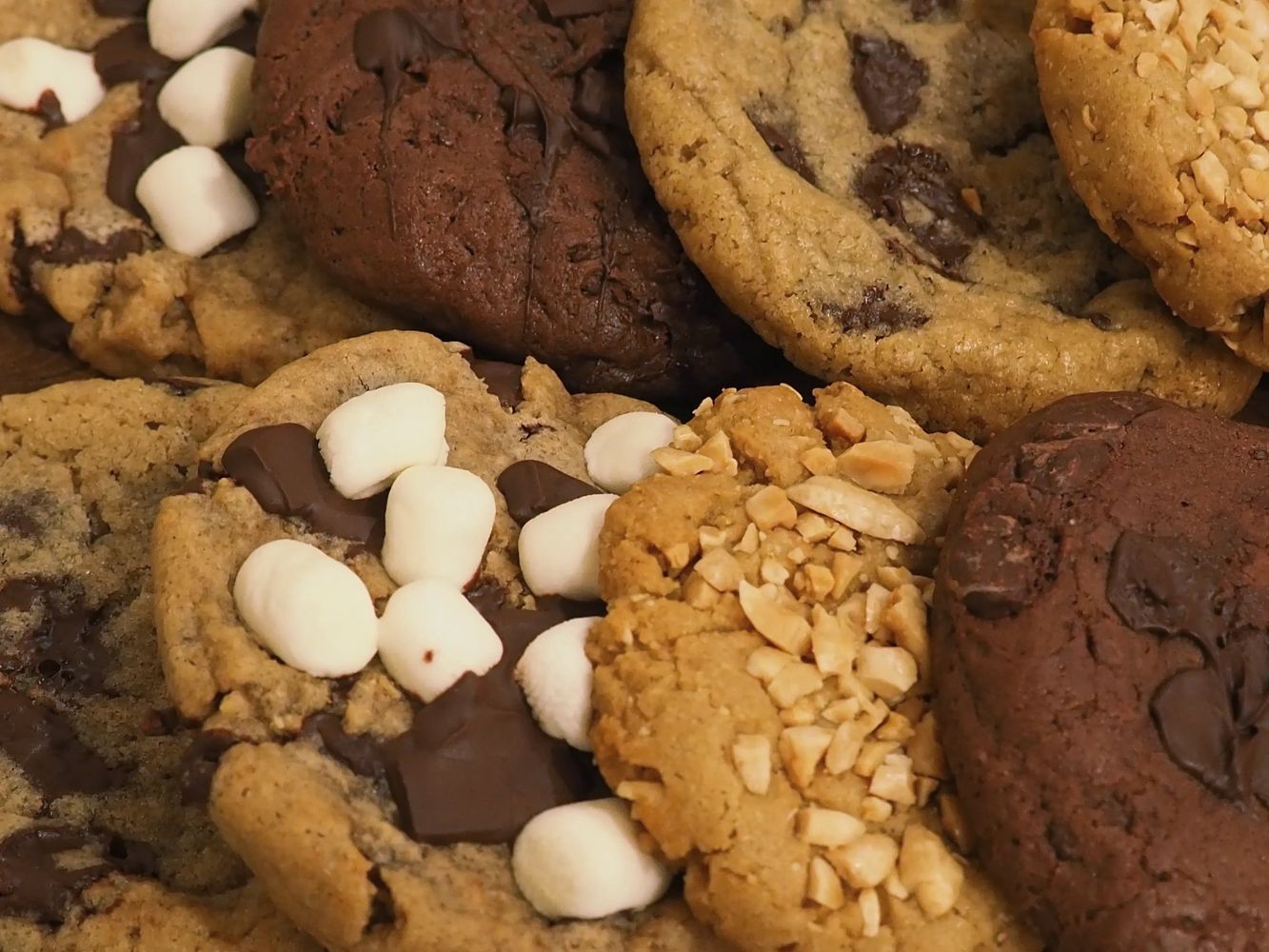 A graham cracker cookie, chocolate chunks, and marshmallows complete the cookie version of the campfire tradition, without the bug bites or singalongs.